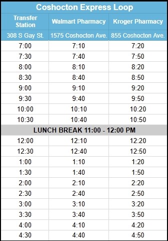 Pick up or drop off must be in the workforce zone locations: Mount Vernon Industrial Park, Fredericktown Industrial Park, or Coshocton Avenue.