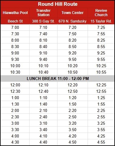 Route can deviate 1/2 mile beyond the stated routes when requested. Call (740) 392-7433 to request a deviation between the route stops.